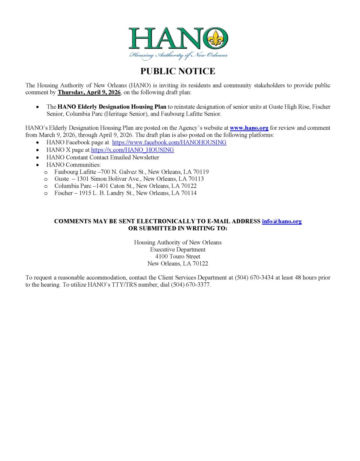 Housing Authority of New Orleans Copyright © 2026 All Rights Reserved.